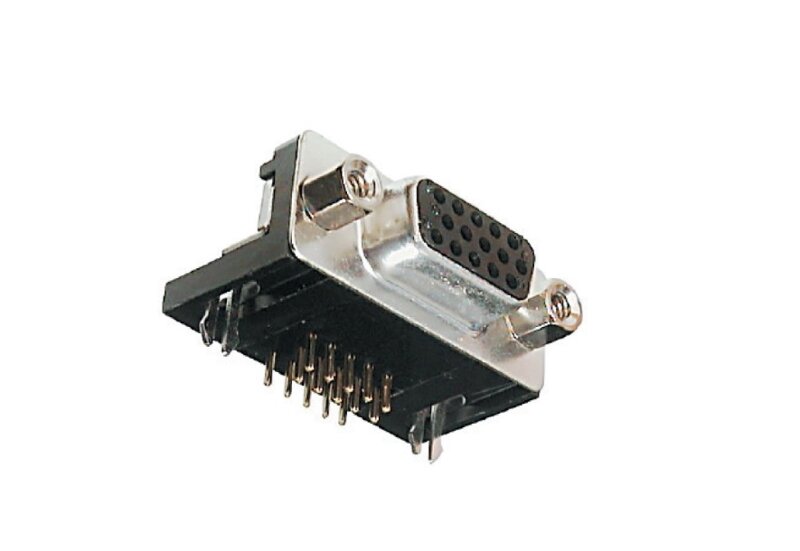 Connettore VGA femmina 15 poli su tre file 90° per circuito stampato .